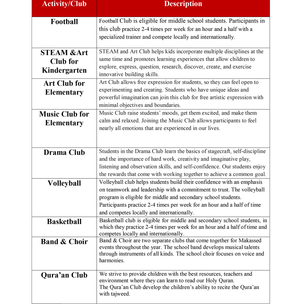 The After School Activities Program comprises a variety of sports and recreational club activities that are open to students and faculty.